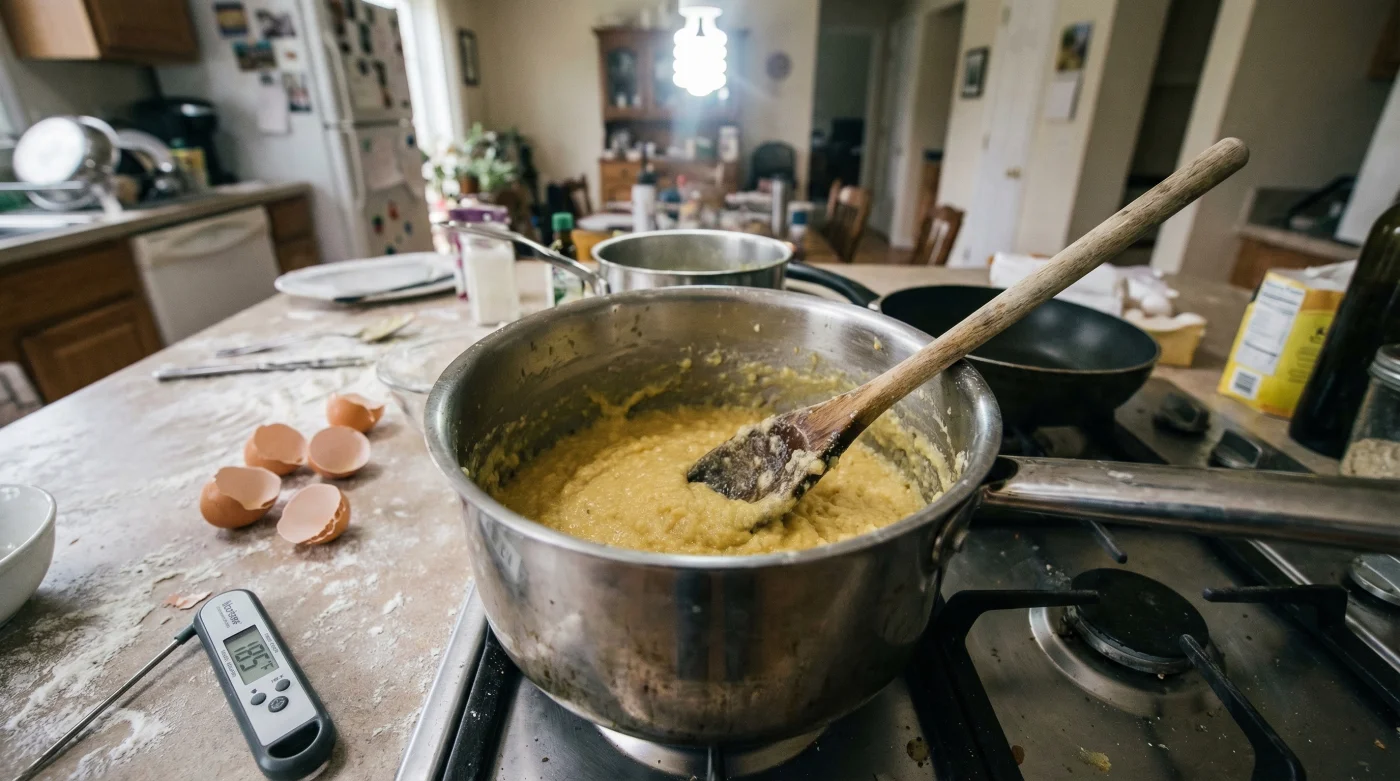 Quando togliete l’impasto base (il cosiddetto polentino) dal fuoco, la tentazione di aggiungere subito le uova per velocizzare i tempi è forte. Ma attenzione: se l’impasto è ancora troppo caldo, il calore eccessivo farà coagulare prematuramente le proteine delle uova. Il risultato pratico? Avrete letteralmente cotto le uova nell’impasto prima ancora di infornarlo, compromettendo del tutto la struttura del bignè che, inevitabilmente, collasserà.