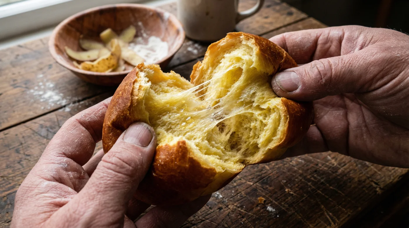 Ricordo il retrobottega di Loris, un vecchio panificatore dell’Appennino emiliano. Le sue mani, segnate dalla farina e dal tempo, schiacciavano con forza delle patate a pasta gialla ancora fumanti. “L’amido della patata è la cassaforte dell’impasto,” mi spiegò, spolverandosi il grembiule. “L’acqua entra, ma non esce. È così che freghiamo i giorni che passano.” Non usava additivi. Lasciava semplicemente che l’alto contenuto di amilopectina della patata catturasse le molecole d’acqua, impedendo all’impasto di seccarsi.